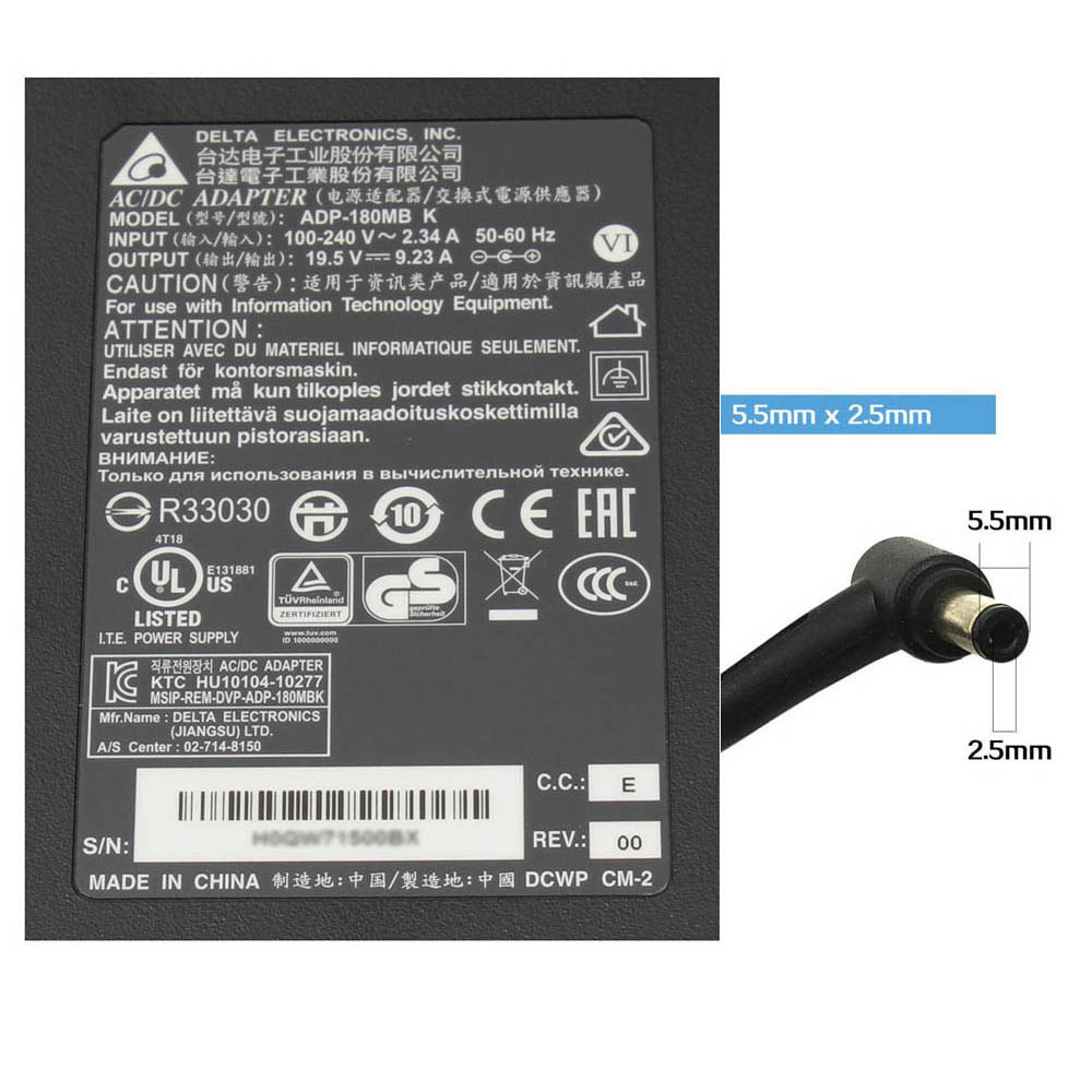 19.5V 9.23A 180W Medion 5.5mm 2.5mm AC Adapter Charger